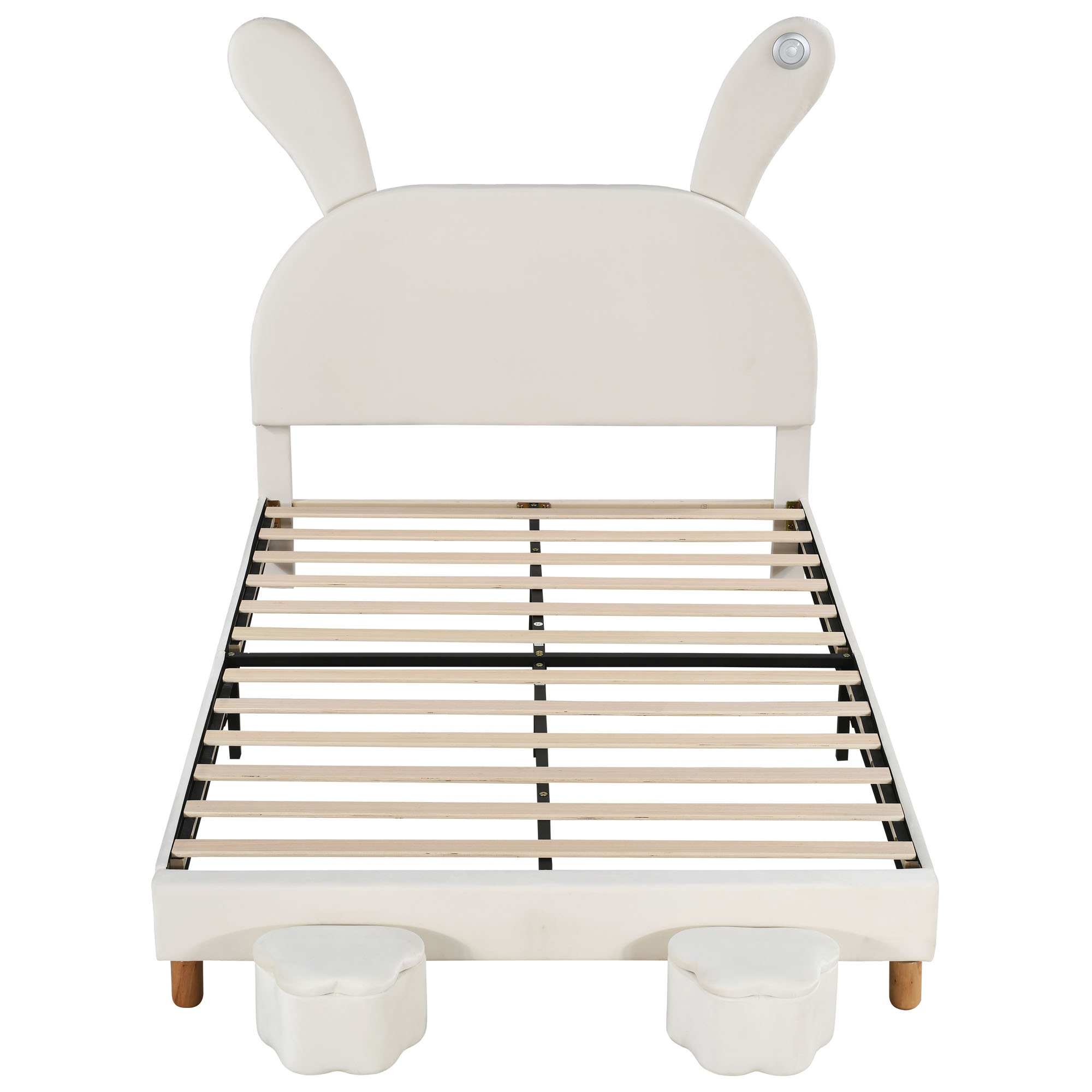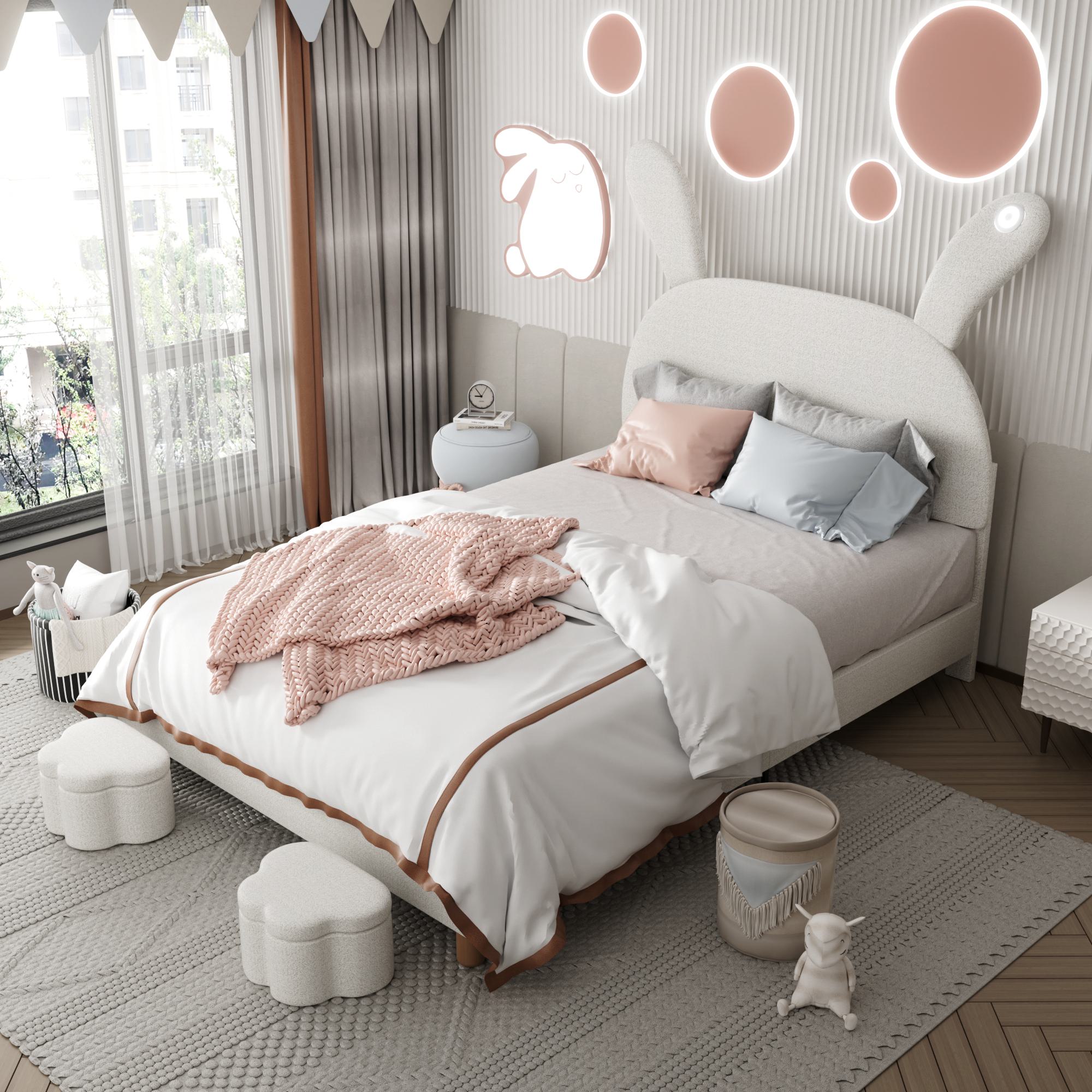 Il nostro letto beige con illuminazione LED e spazio portaoggetti è l'ideale per aggiungere un tocco di eleganza e funzionalità alla camera da letto. Questo letto, di dimensioni 140x203.5x145-151.5 cm, è realizzato in morbido tessuto effetto velluto e non include il materasso, ma è dotato di un pratico sistema di illuminazione LED integrato, perfetto per leggere o studiare comodamente. La presenza di orecchie di coniglio ripiegabili aggiungono un tocco di personalità e divertimento, mentre i due poggiapiedi con spazio portaoggetti interno offrono soluzioni pratiche per mantenere l'ordine in stanza. Il design del letto include anche un telaio a doghe robusto e un pannello della testiera regolabile in altezza, garantendo supporto e comfort duraturi.
