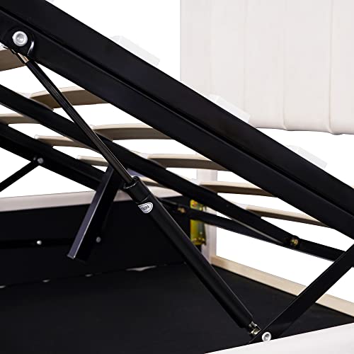 Letto imbottito 140 x 200 cm, letto matrimoniale con vano letto sollevabile idraulico, testata regolabile in altezza, rete in metallo, letto matrimoniale adulto (bianco crema)
