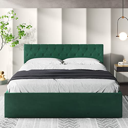 Letto imbottito con rete a doghe e cassetto, 140 x 200 cm, letto matrimoniale, rivestimento in velluto, testiera imbottita