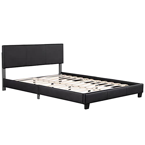 Letto imbottito in similpelle, modello Barcellona, 3 dimensioni e 2 colori disponibili, nero, 160 x 200 cm
