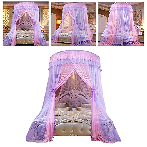 Letto Letto Tenda della decorazione tende appese letto a baldacchino in pizzo trasparente Mesh principessa Dome zanzariera per letto matrimoniale viola