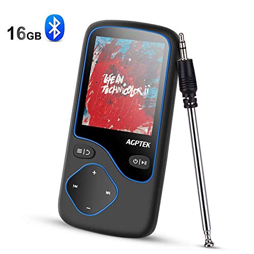 Lettore MP3 Bluetooth 4.0, AGPTEK 16GB Lostless MP3 Player con Display a Colori 1.8", Radio FM in Modalità Bluetooth, Registrazione Vocale, Supporta Scheda SD fino a 128G - Nero (C5MB)