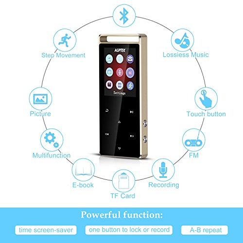 Lettore Mp3 Bluetooth, 8 GB AGPTEK A01TB MP3 Player di Metallo con Fascia del Braccio, Tasti di Tocco, Funzione Radio FM, Registrazione di Voce, Colore Nero