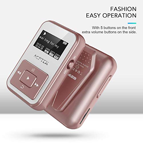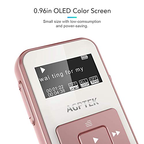 Lettore Mp3 Bluetooth, AGPTEK A12 Clip Mp3 Player 8 GB con Radio FM e Registratore vocale(un caso in silicone incluso), Colore Rosa