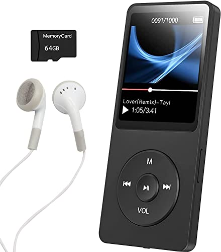 Ampio spazio di archiviazione da 64 GB: il lettore MP3 viene fornito con una scheda TF da 64 GB e migliaia della tua musica preferita possono essere scaricati! Supporta l'espansione della scheda TF fino a 128 GB! Ricarica completa in 1 ora tramite il cavo di ricarica USB e può essere riprodotta fino a 9 ore.