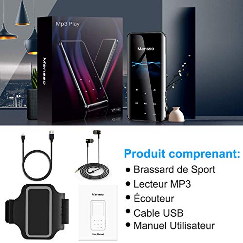 Lettore MP3 Bluetooth 4.2 MANSSO Portatile 8G, Pulsante Tocco, Effetto Specchio con schermo TFT da 2,4 pollici, Lettore Musicale Radio FM Registratore vocale E-Book Supporta fino 128GB (8, Nero2)