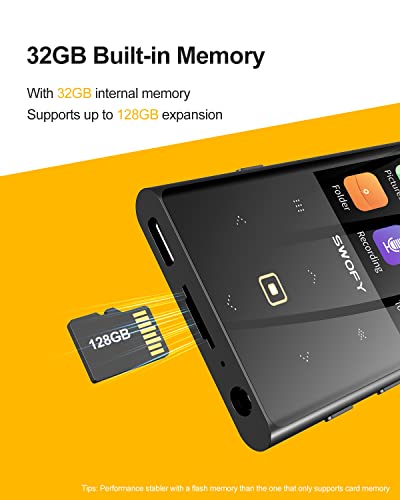 ✅【32GB di memoria interna】Questo lettore musicale ha una memoria integrata da 32GB e supporta l'espansione fino a 128GB. Rispetto a una memoria che supporta solo l'espansione della scheda, la memoria flash ha una migliore durata e stabilità. Non appena si riceve il lettore MP3, è sufficiente inserirvi le proprie canzoni preferite. Facile da usare.