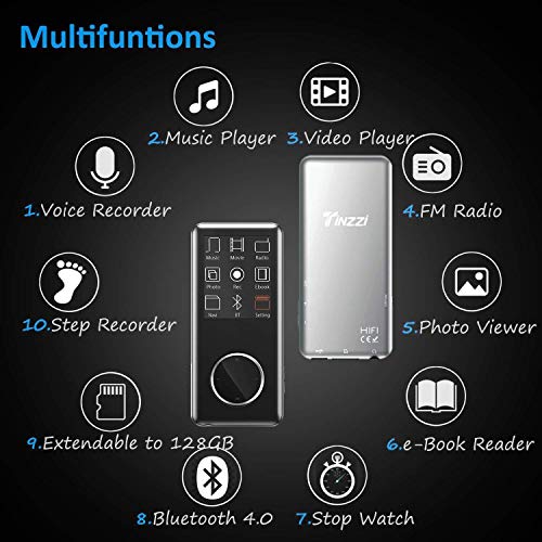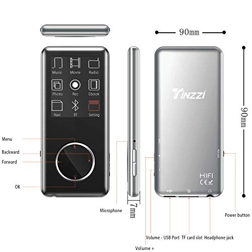 Lettore MP3 Bluetooth,Tinzzi Lettore MP3 Lettore Musicale Bluetooth con HIFI compatibile, Lettore Audio Digitale Capacità Integrata 8 GB con Display LED da 1,8 " Lettore Portatile con Altoparlante