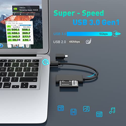 【USB 3.0 & USB Cfast Reader】Professionale Cfast Card Reader 2.0 USB ha una porta USB 3.0 e un adattatore da USB 3.0 a USB C, che può essere utilizzato per collegare un dispositivo a tutti i tipi di MacBook Pro, Mac Air, computer, PC e laptop compatibili e altri dispositivi Type-C.