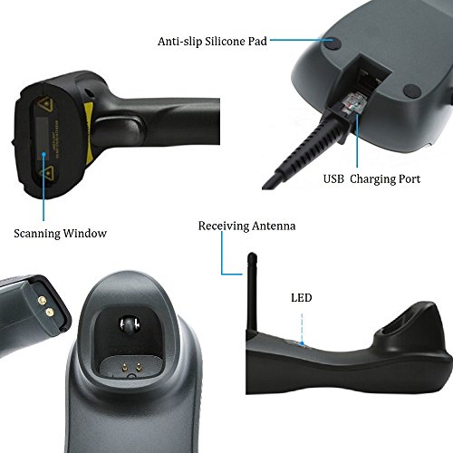 WER, Lettore di codice a barre, scanner/ lettore di documenti wireless, 433 MHz, con memoria e base di ricarica