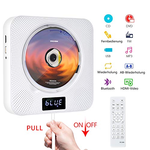 Lettore DVD/CD Bluetooth Lettore CD Portatile Montabile a Parete CD/DVD Lettore HDMI Altoparlante HiFi integrato con telecomando per TV, lettore musicale, Supporto radio FM