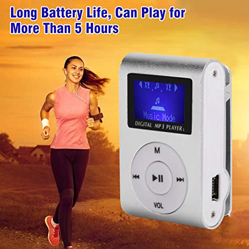 Lettore MP3, Mini Schermo LCD Portatile Lettore Musicale MP3 Lettore MP3 Digitale con Sport Lettore Musicale con Clip Posteriore Walkman con Auricolare, Scheda di Memoria di Supporto(Argento)