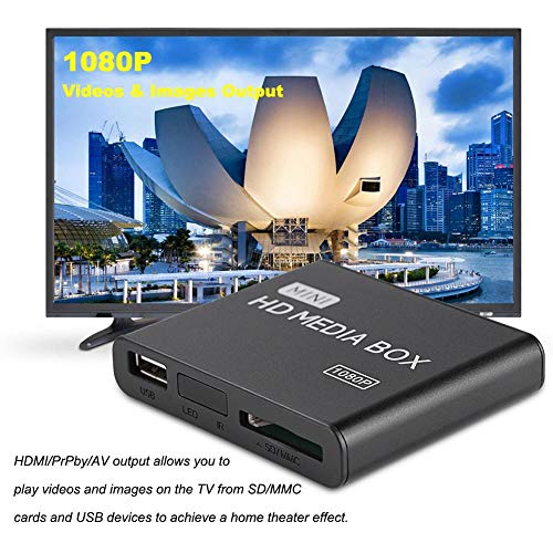 Lettore Multimediale Full HD 1080P Mini Full HD Lettore Multimediale Media Player con TelecomandoMedia Player Box Supporto USB MMC RMVB MP3 AVI MKV(Black)