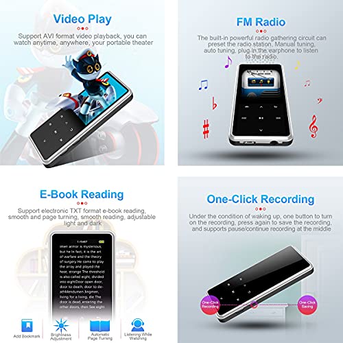 Lettore Musicale MP3 HiFi Bluetooth con Touch Screen Walkman Portatile Radio FM Senza Perdita di Suono Riduzione Intelligente del Rumore Registratore Vocale(A,32GB) Regalo di Natale