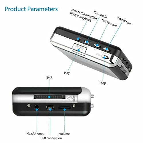 1. Converte nastro in MP3, converte rapidamente vecchie cassette in formato MP3 tramite un cavo USB.Facile da usare.Plug and Play USB dispositivo, nessun driver richiesto ..