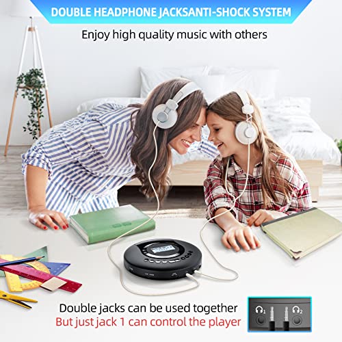 【Due jack per cuffie e anti-shock】 Il lettore CD portatile ha due jack per cuffie. Puoi utilizzare due cuffie cablate contemporaneamente. Quindi puoi condividere facilmente la musica con gli altri. Il lettore CD Discman è dotato di protezione antiurto, che fornisce un'esperienza sonora stabile durante gli spostamenti.