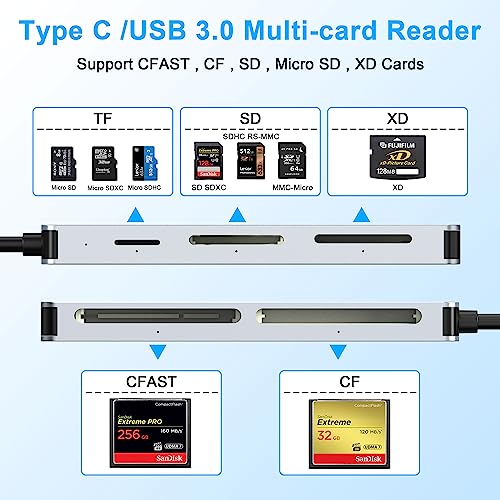 ✅[Cinque lettori di schede in uno]: Supporta CFast Card, CF Card (CF Card Slot);