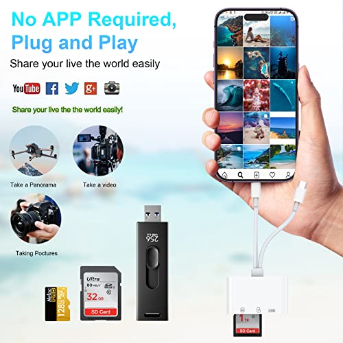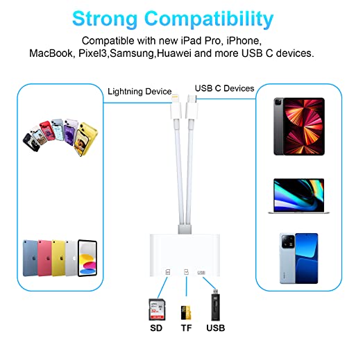 【Progettazione per dispositivi Lightning/USB C】Il lettore di schede SD/TF (Micro SD) con USB supporta tutti gli iPhone con Lightning iOS 12.0 e successivi e gli iPad con iOS 12.0 o successivi/OTG Android telefono/computer e altri dispositivi con porta Type-C/USB-C, come il nuovo MacBook 2016-2023, iPad Pro, Samsung Galaxy Google Pixel ecc. Adatto a tutti i tipi di Dash Cam/Telecamera di prova/Schede di memoria per fotocamere digitali.