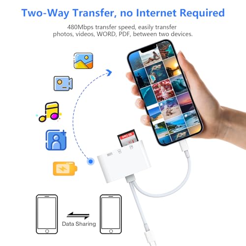 【Compatibilità con i dispositivi di grandi dimensioni】Questo lettore di schede universale, compatibile con iPhone 15/15 Pro Max/14/14 Pro/13 Pro/12/12 Pro/11Pro/XS /XS Max/XR/8/7, Pad4, Pad Air, Pad mini. Type-C per Samsung Galaxy S10 S9 S8 Note 9 8, LG G5 G6 V20, Google Pixel, Google Nexus 5X 6P, MacBook Air/Pro, Surface Pro 9/8, Huawei P9 10, Lumia 950, Lumia 950 XL/Moto Z e così via.