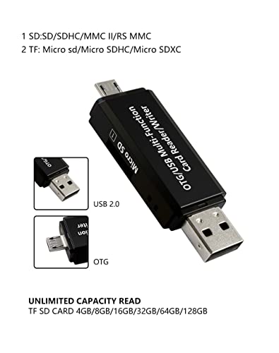 [Lettore di schede SD multifunzione] Il dispositivo ha una porta USB 2.0 su un'estremità e una porta USB 2.0 Micro USB sull'altra e viene fornito con una copertura per entrambe le porte. Questo lettore di schede è compatibile con le porte di PC laptop, smartphone e tablet Android con porta Micro USB / supporta la funzione OTG.