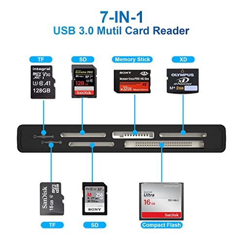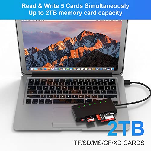 [Lettore di schede USB 7 in 1] Questo lettore di schede multicamera è dotato di 1 * slot CF, 2 * SD, 2 * TF (Micro SD), 1 * MS, 1 * slot per schede XD. Inoltre, questo adattatore per schede di memoria può leggere e scrivere 5 schede diverse contemporaneamente, il che può migliorare notevolmente l'efficienza del tuo lavoro.