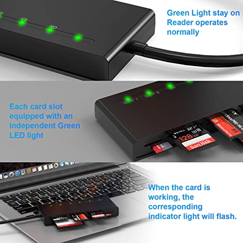 [Trasferimento dati super veloce a 5 Gbps] Il lettore di schede di memoria si sincronizza a velocità fino a 5 Gbps, 10 volte più veloce di USB 2.0 (480 Mbps) e retrocompatibile con USB 2.0/1.1. Trasferisci film HD ad alta risoluzione, immagini e registrazioni video sul tuo computer più velocemente. Ogni indicatore LED separato per lo stato di funzionamento.