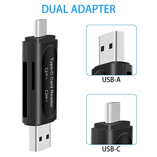 Lettore di Schede SD, Seminer 4 in 1 USB C/USB 2.0 Adattatore per Schede di Memoria OTG a Doppio Slot per Schede di Memoria TF/Micro SD/SD/SDXC/Micro SDXC/Micro SDHC (Nero)