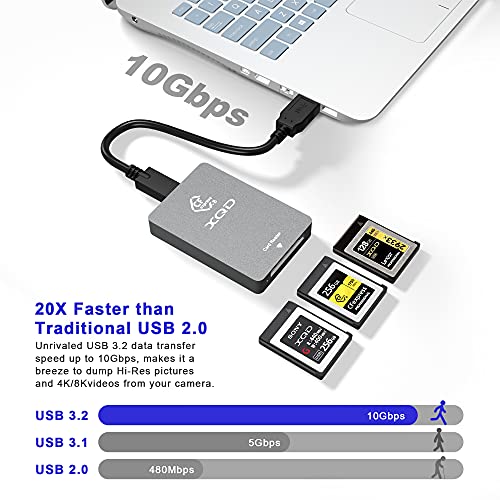Lettore di Schede XQD con Lettore di Schede tipo B CFexpress, lettore di schede di memoria CFexpress/XQD USB 3.2 Gen 2 da 10 Gpbs, compatibile con la scheda XQD di Sony G/M Series Lexar 2933x/1400x