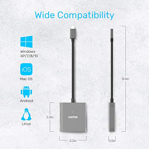Lettore di schede SD USB C, Unitek 3 in 1 Tipo da C a USB Camera SD/Micro SD Adattatore per schede di memoria SD Capacità 2 TB per MacBook Pro/Air, XPS e altri dispositivi USB-C