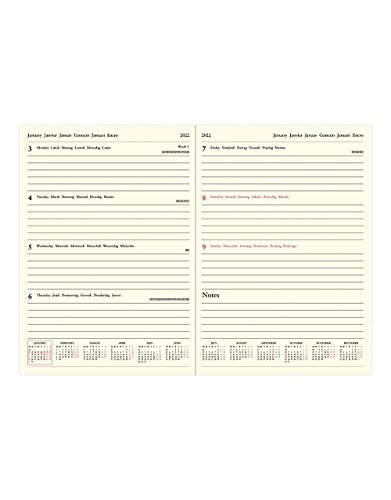 LETTS Lecassa A5 1 settimana su 2 pagine multilingue Navy 2022