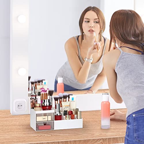 LETURE Organizer da scrivania per trucchi da scrivania con cassetto + 6 foglietti adesivi, bianco, 13 scomparti, organizer per accessori da scrivania per ufficio, casa, scuola (bianco)