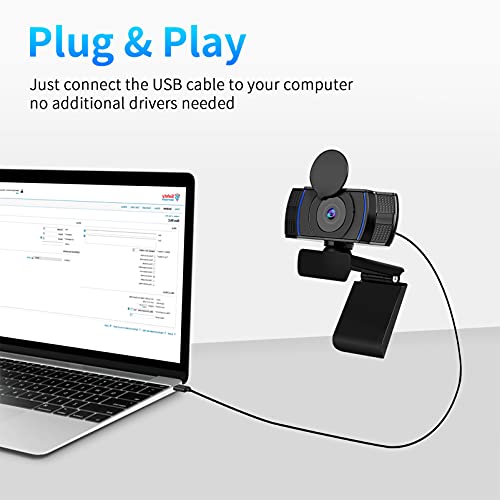 Lety 1080P HD webcam con microfono e cappuccio per la privacy: fotocamera per computer con connessione USB - messa a fuoco automatica - adatta per l'uso con Skype FaceTime chiamate conferenze