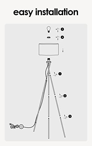 VERSATILE: La lampada da terra ha un attacco E27 standardizzato ed è adatta a qualsiasi sorgente luminosa con attacco E27 (classe energetica da A++ a E, massimo 10 W per presa). Puoi determinare tu stesso il colore, la potenza e l'attenuazione della lampada scegliendo la sorgente luminosa. La lampadina a filamento LED mostrata non è inclusa nella fornitura ed è disponibile separatamente sotto "B08244YBTW".
