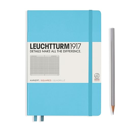 Leuchtturm 1917, taccuino (A5), copertina rigida, 249 pagine A quadretti Kariert blu ghiaccio