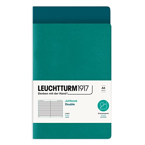 LEUCHTTURM1917 362696 Jottbook Double Medium (A5), 59 pagine numerate, Righe, Pacific Green + Verde Smeraldo, confezione doppia