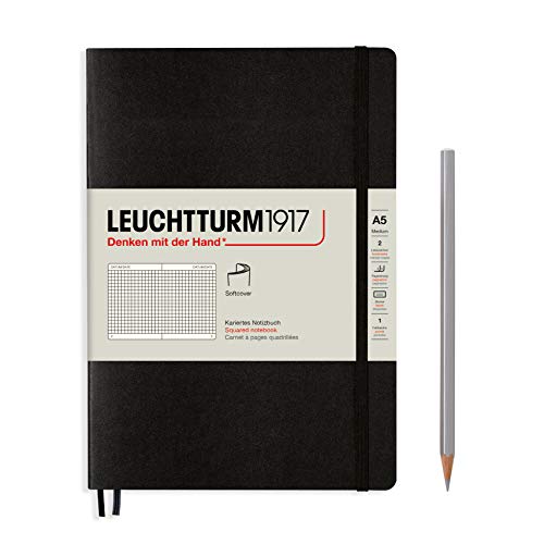 Leuchtturm1917, taccuino, copertina morbida A quadretti Medium (A5) Nero