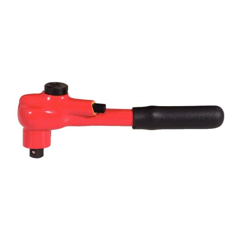 Quadro di manovra a norma DIN 3120 / ISO 1174 con arresto a sfera Secondo norme DIN 7449 Con rivestimento isolante a norma IEC 60900 Con meccanismo a cricchetto commutabile a 32 denti Meccanica di bloccaggio sicuro sull'impugnatura Acciaio speciale per utensili Azionamento quadro in pollici 1/2 Lunghezza totale L in mm 245.0 Dente 32 Standard DIN 7449, DIN 3120, ISO 1174, IEC 60900 Attributo di funzione 1 Commutabile Peso del tessuto 750 Altezza della testa (A) 88.0 Certificato di prova 1000Volt GS Dimensioni dell'imballaggio 1 Impugnatura tauchisolierter Griff Materiale1 Feinster Chrom Vanadium Stahl Isolamento Tauchisolierung nach DIN EN 60900