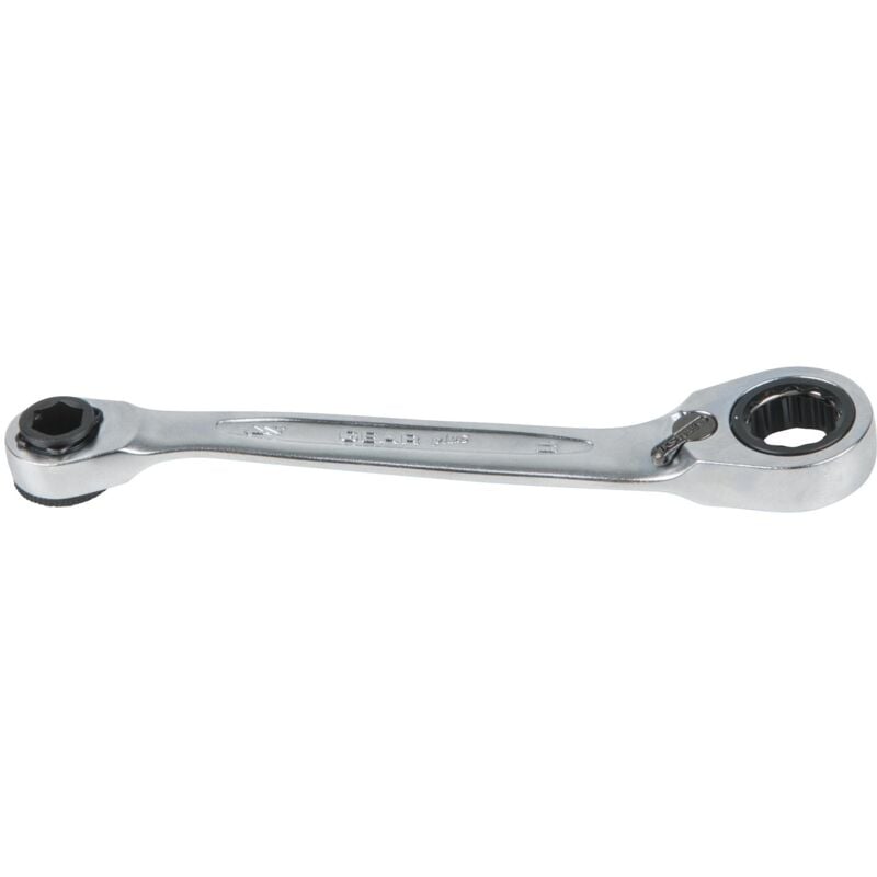Particolarmente pratica e compatta Con corona girevole Struttura molto piatta per punti di difficile accesso Testa a cricco piegata a 15° Dentatura precisa con 72 denti Con leva di inversione Cromata opaca Cromo-vanadio Dente 72 Azionamento esagonale per punte 1/4 x 11 mm Altezza della testa (A2) 9.7 Altezza della testa (A1) 10.2 Peso del tessuto 45 Dimensione esterna B2 14.2 Dimensione esterna B1 17.2 Attributo di funzione 2 Commutabile Angolo di rotazione del ritorno 5° Dimensioni dell'imballaggio 1 Materiale1 Feinster Chrom Vanadium Stahl, hochglanz verchromt Lunghezza totale L in mm 115.0 Attributo di funzione 1 mit Drehkranz Ricezione in mm 11 mm Forma abgewinkelt