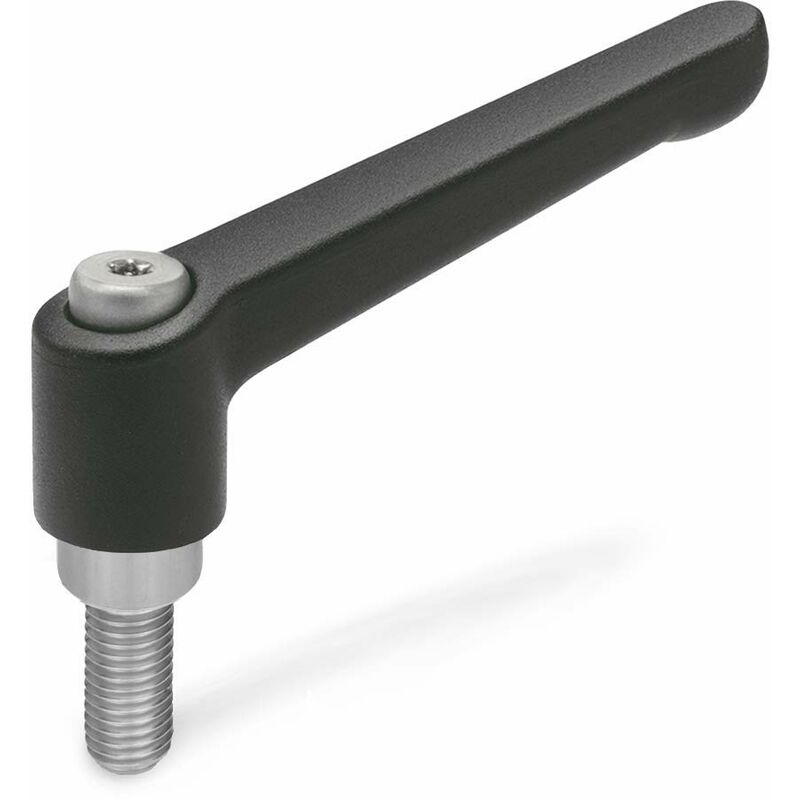 Manico lunghezza l1: 63 mm, altezza D1: M8, lunghezza filettatura L2 filettatura: 16 mm, h: 45 mm Con vite filettata in acciaio INOX Manico corpo: zinco pressofuso, rivestimento in plastica: Nero, RAL 9005 strukturmatt Vite inserto e tieni vite: acciaio inossidabile trattamento antiruggine, 1.4305 Conforme a RoHS