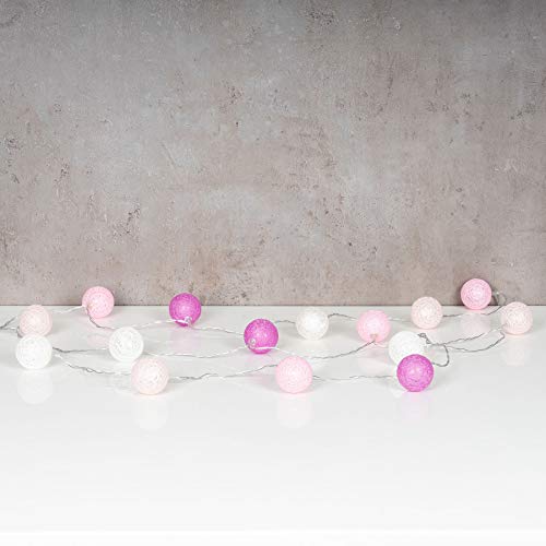 Levandeo - Ghirlanda di 15 luci a LED, in cotone, colore: Rosa e Bianco