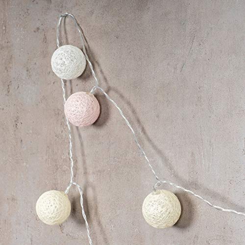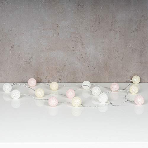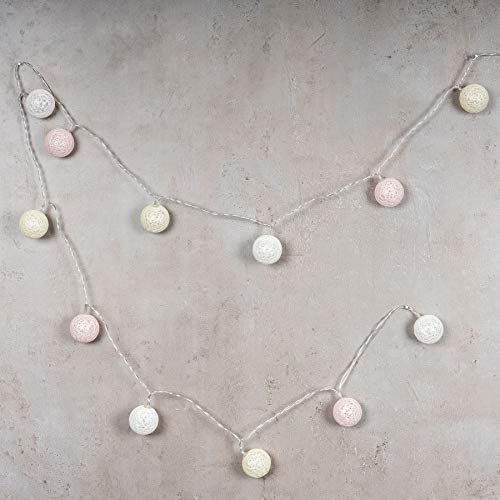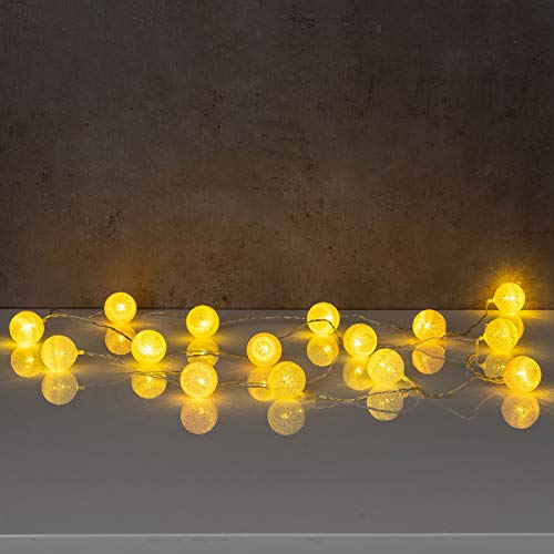 Catena luminosa a LED, circa 2,80 m di lunghezza con 15 palline da 4 x 4 cm in cotone e plastica