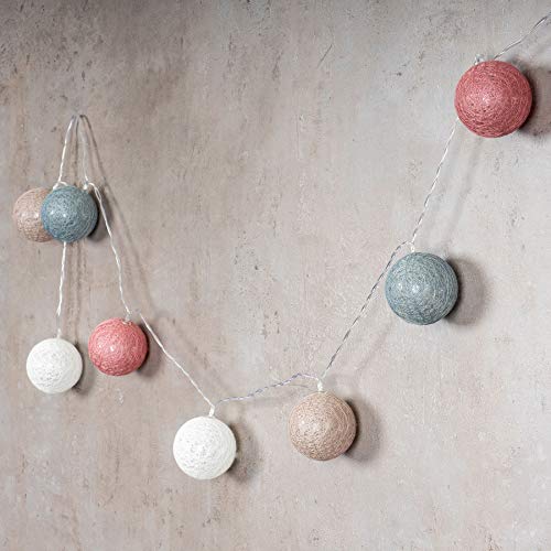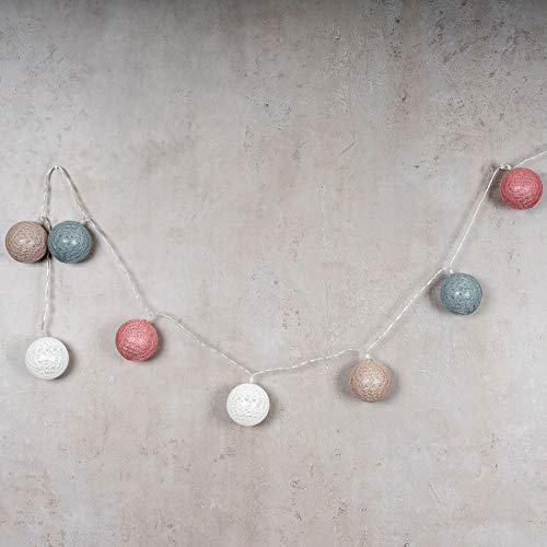 Levandeo - 10 luci a LED a forma di palline, in cotone, colore rosa, blu e bianco, ghirlanda di lampadine