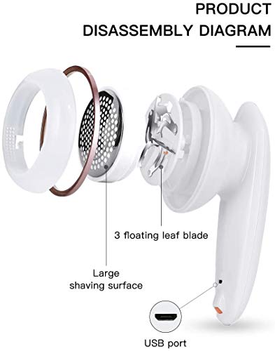 【Ricaricabile USB】Progettato per viaggi e uso domestico. L'alimentatore USB compatibile con qualsiasi porta USB del dispositivo lo rende comodo da caricare ovunque. questo rasoio per lanugine può lavorare ininterrottamente per più di 60 minuti dopo una carica completa. È piccolo, leggero e portatile che ti aiuta a sbarazzarti di pelucchi sui tessuti quando e dovunque.