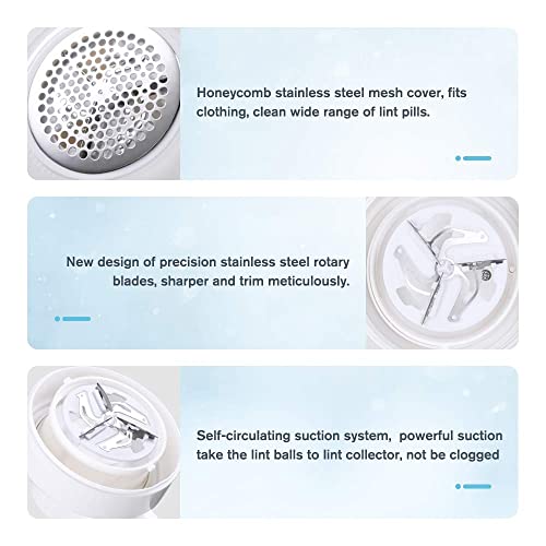 【Facile da usare e da pulire】 genera una forte aspirazione quando le lame girano, attira con forza tutti i pelucchi indesiderati nel contenitore di raccolta staccabile, una pulizia rapida e comoda. Contenuto della confezione: 1 levapelucchi elettrico, 2 perline di ricambio per lama da barba, 1 cavo di ricarica USB, 1 spazzola pulita, 1 manuale.
