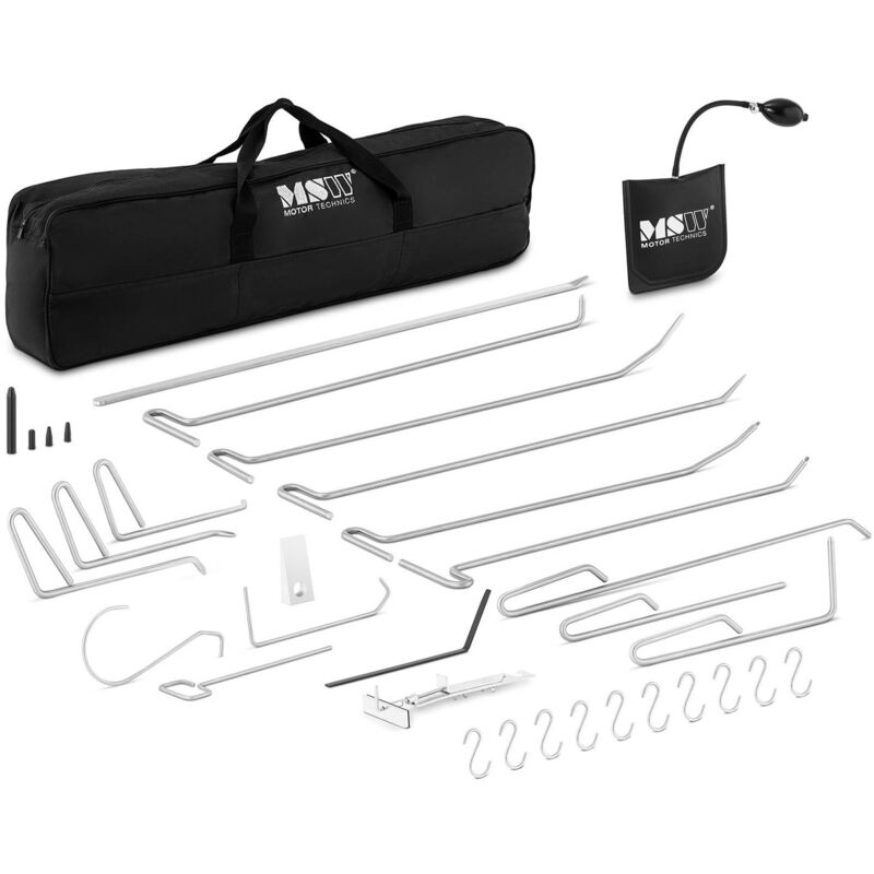 Tirabolli auto: set completo per la facile riparazione di ammaccature di marca MSW ✅ Modello: MSW-DA-10 ✅ Articolo: 10061538 ⬇️ Caratteristiche principali Versatile: diversi tirabolli per la rimozione di ammaccature di piccole e medie dimensioni. Delicato: metodo per rimuovere le ammaccature che non rovina la vernice, senza che l'auto subisca diminuzioni di valore. Resistente: realizzato in materiali che durano nel tempo come acciaio, inox o zinco. Efficace: riparazione rapida ed economica e tempi d'attesa ridotti per i clienti. Semplice: facilità d'uso anche per le persone inesperte grazie a istruzioni esaustive. ⬇️ Dettagli tecnici Manuale Sì ⬇️ Descrizione del prodotto L'ampio set di levabolli auto MSW-DA-10 di MSW, l'esperto in attrezzature professionali per il settore automobilistico, ti offre tantissime possibilità per rimuovere ammaccature piccole e grandi in modo efficace. Avrai a disposizione numerosi tipi di tirabolli carrozzeria con cui potrai raddrizzare la