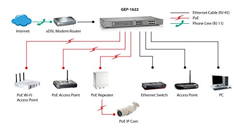 LevelOne GEP-1622 Non gestito Gigabit Ethernet (10/100/1000) Grigio Supporto Power Over Ethernet (Poe)