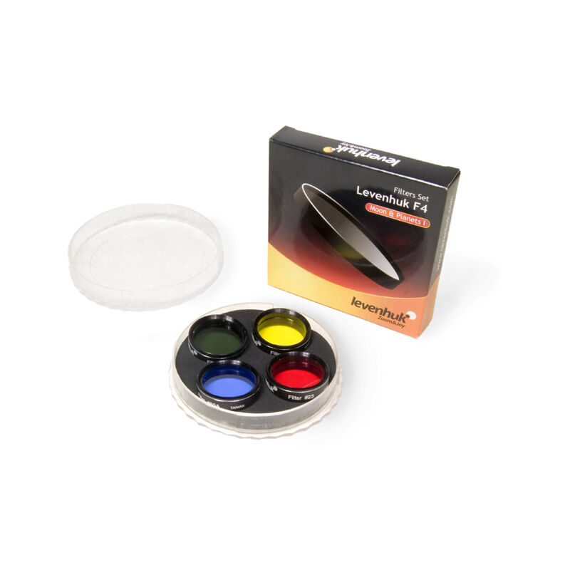 Il set di filtri Levenhuk F4 The Solar System comprende filtri per la luce del telescopio. Questi filtri sono utili per studiare lo spazio esterno. Aumentano il contrasto tra le aree dei pianeti che sono illuminate in modo disomogeneo, permettendoti di osservare dettagli più fini. Questo kit renderà più interessante l'esplorazione del sistema solare. Tutti i filtri hanno un diametro del tubo dell'oculare di 1,25 pollici e hanno una filettatura interna per combinare i filtri tra loro. 1,25 Levenhuk filtro ottico #23A (rosso chiaro) Questo filtro è indispensabile per studiare i pianeti del sistema solare, specialmente Marte, Saturno e Giove. È anche adatto per osservazioni diurne di Venere e crepuscolari di Mercurio. Il filtro ottico da 1,25 Levenhuk #23A (rosso chiaro) fa risaltare la luminosità delle particelle di polvere nelle code delle comete. Il filtro ha una bassa trasmissione della luce ed è raccomandato per l'uso con telescopi con un'apertura di 130 mm o superiore. 1,25