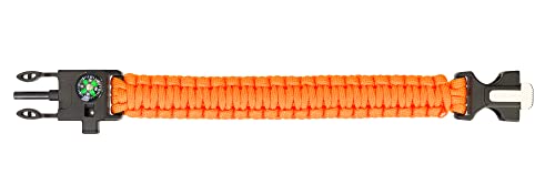 Levenhuk LabZZ FL5: Bracciale da Turismo 5 in 1 con Pietra Focaia, Acciarino, Corda, Bussola e Fischietto, Arancio