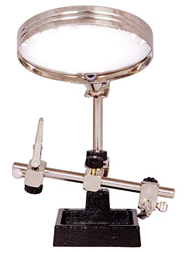 Lente d'ingrandimento con supporti terza mano e base dotata di vassoio porta accessori per la riparazione di gioielli, orologi e componenti elettroniche, per la saldatura e la pittura di dettagli per modellismo