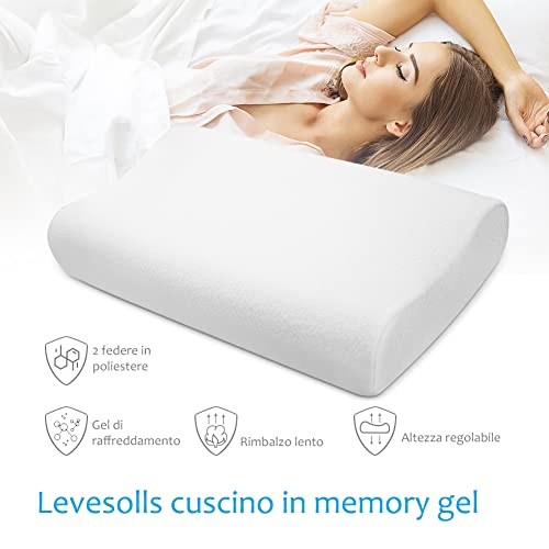 Levesolls Cuscino Cervicale Memory Foam per Dormire con Altezza Regolabile Antipolvere e Antiacaro, Cuscino Letto Ergonomico per Dolori a Collo/Cervicali, Rimovibile/Lavabile